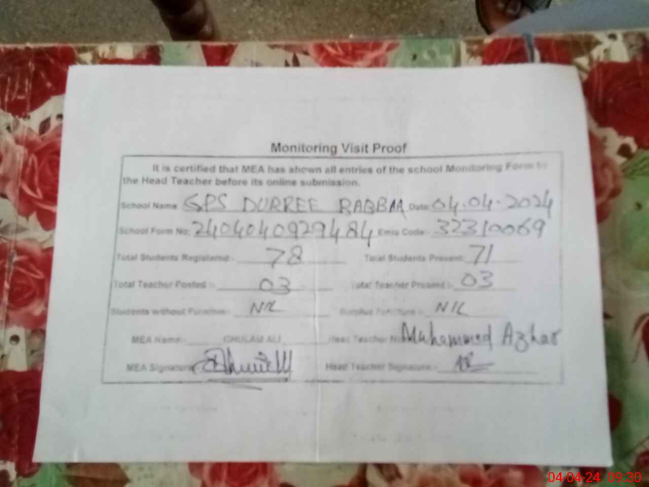 | EMIS Code: 32310069 | Name of School: GPS DUREE BABBER | |||