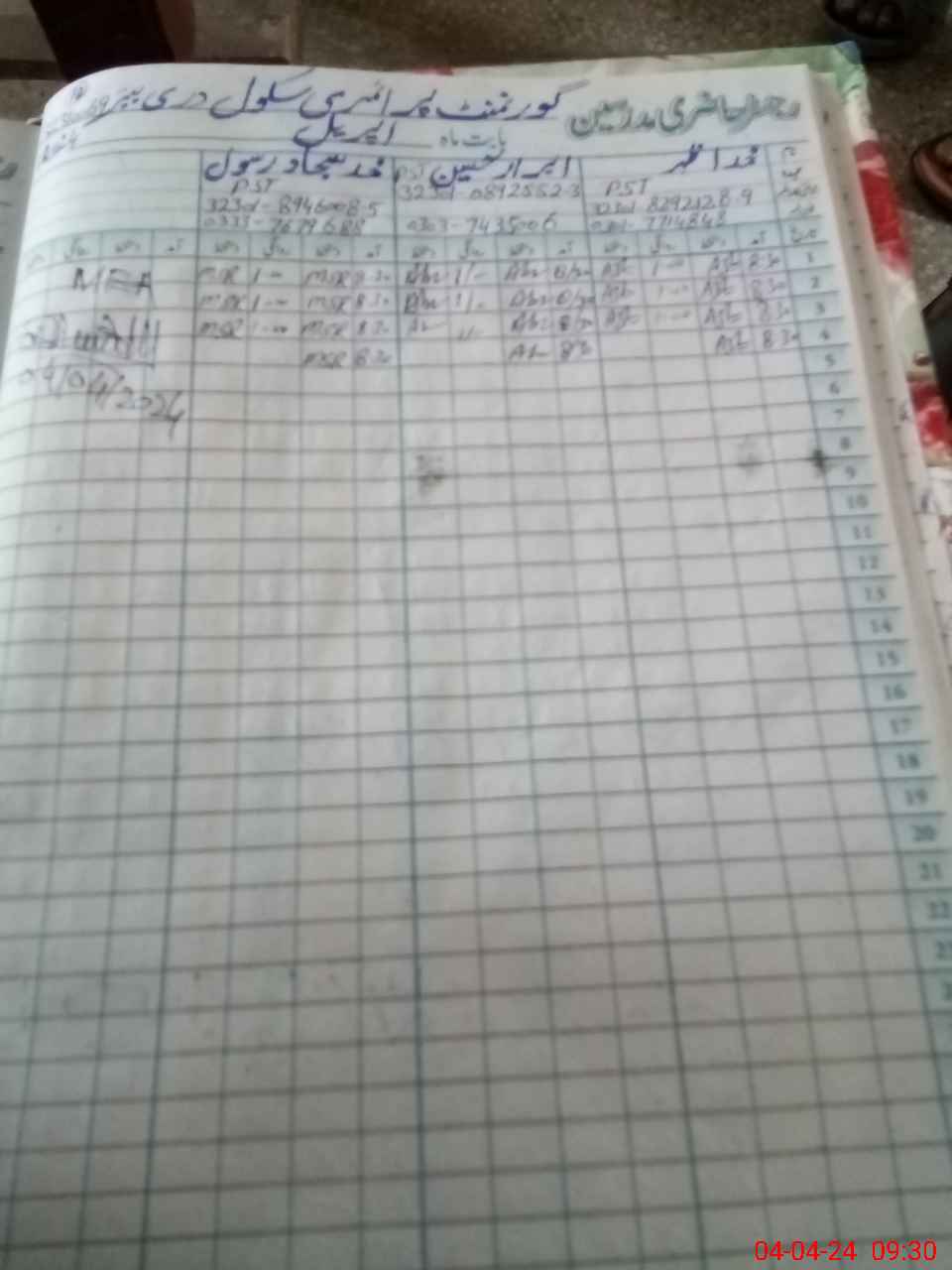 | Name: MU**** AZ**** Designation: (School Headmaster's/Headmistress's) PST Phone/Cell Number: 03**** |