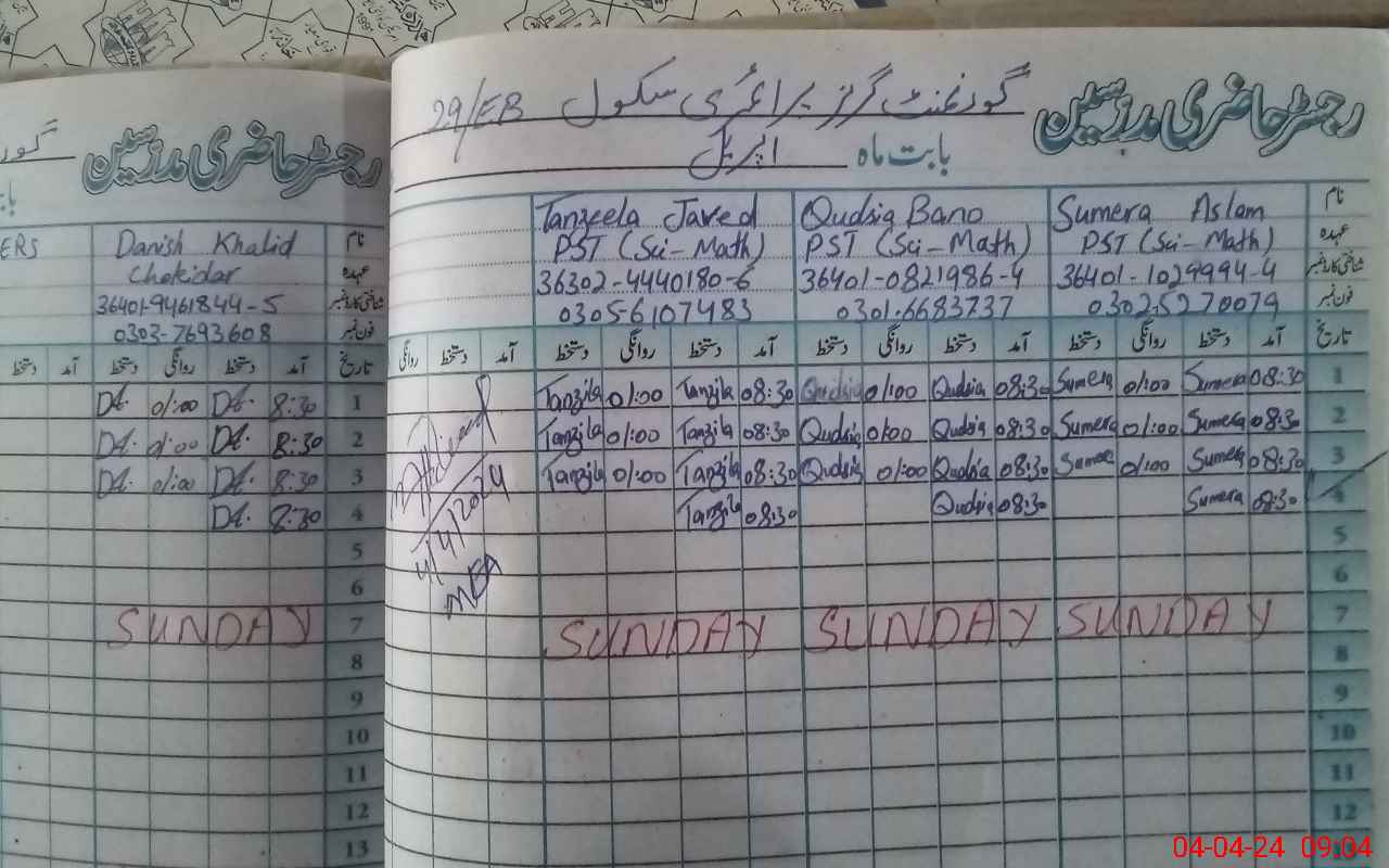 | Name: TA**** JA**** Designation: (School Headmaster's/Headmistress's) PST Phone/Cell Number: 03**** |