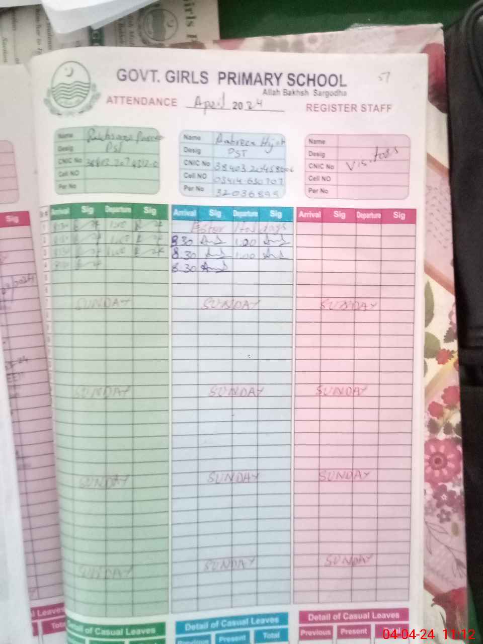 | Name: RU**** PA**** Designation: (School Headmaster's/Headmistress's) PST Phone/Cell Number: 03**** |