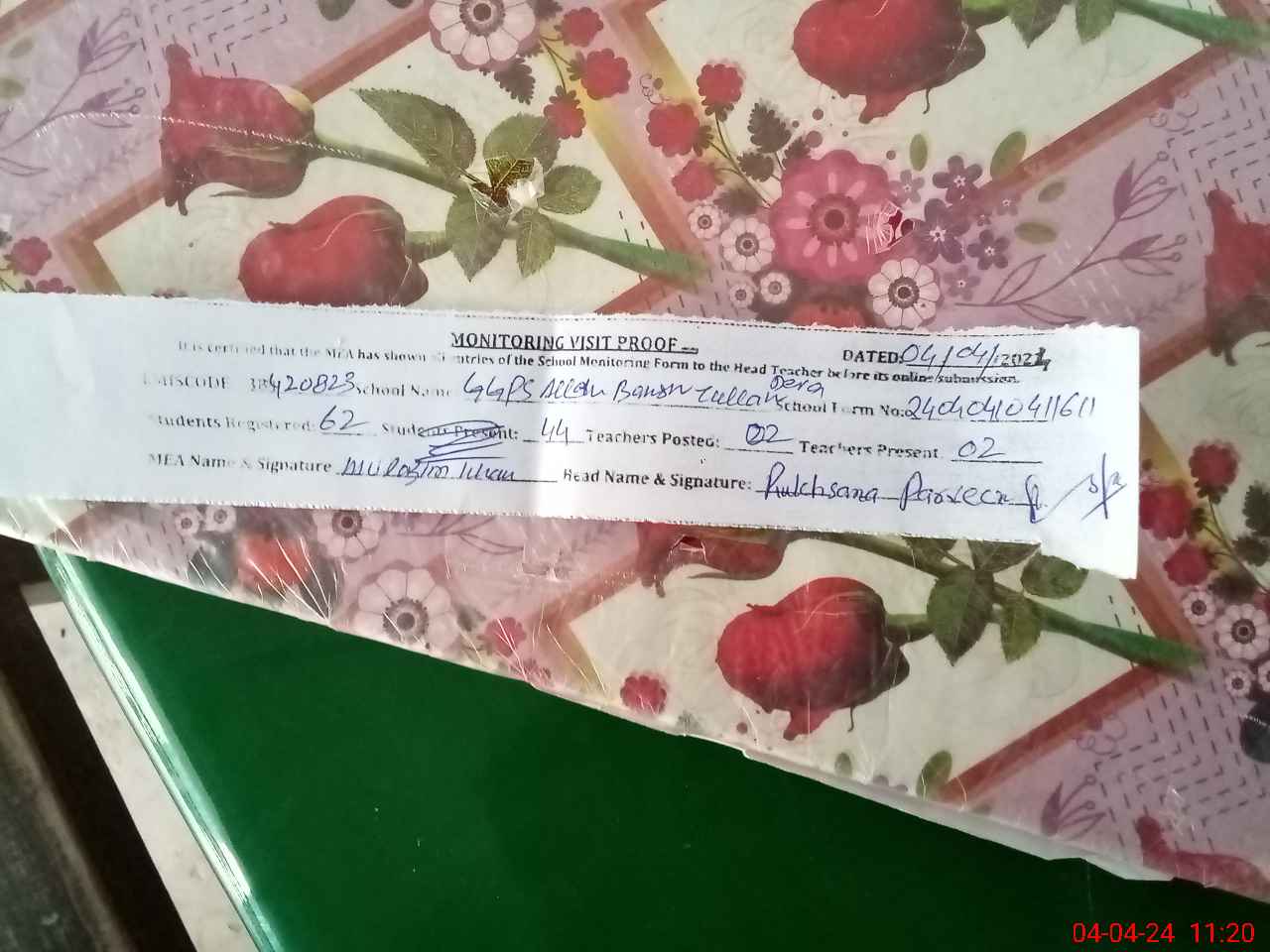 | EMIS Code: 38420823 | Name of School: GGPS DERA ALLAH BUKHSH TULLAH | |||