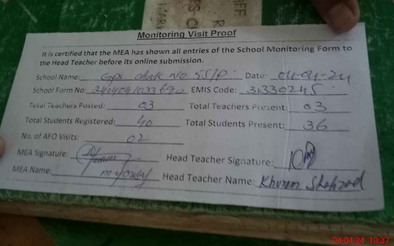 | EMIS Code: 31330245 | Name of School: GPS CHAK 55/P | |||