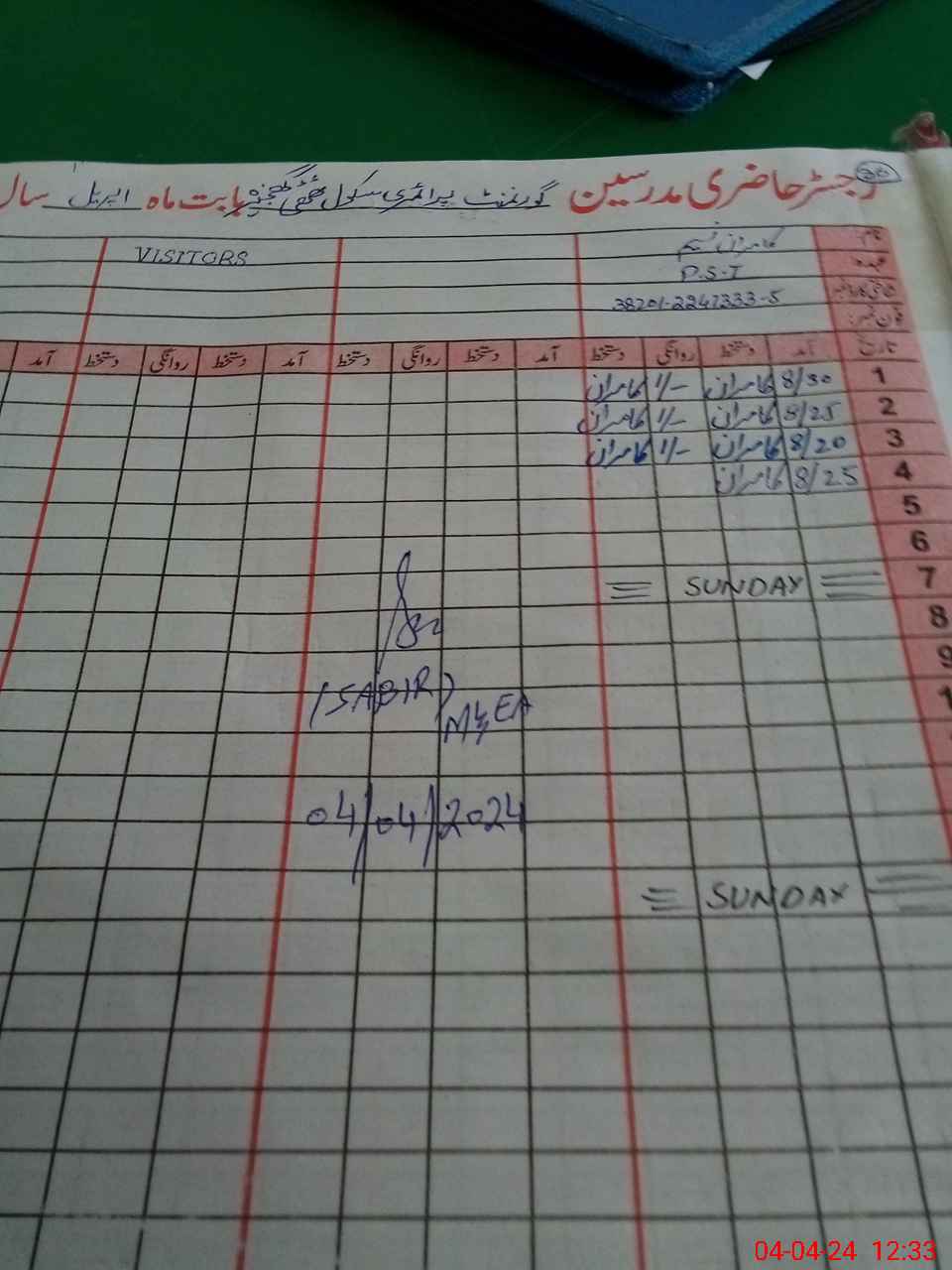 | Name: Wa**** Ru**** Designation: (School Headmaster's/Headmistress's) PST Phone/Cell Number: 03**** |
