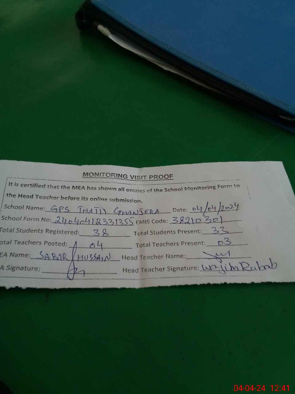 | EMIS Code: 38210301 | Name of School: GPS THATHI GHANJERA | |||