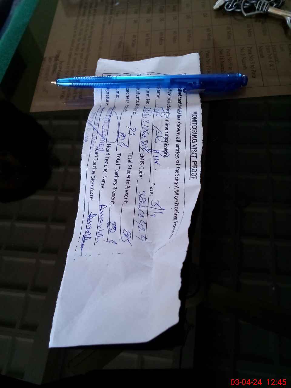 | Attendance Register | Head Teacher | MEA with School | Visit Proof |