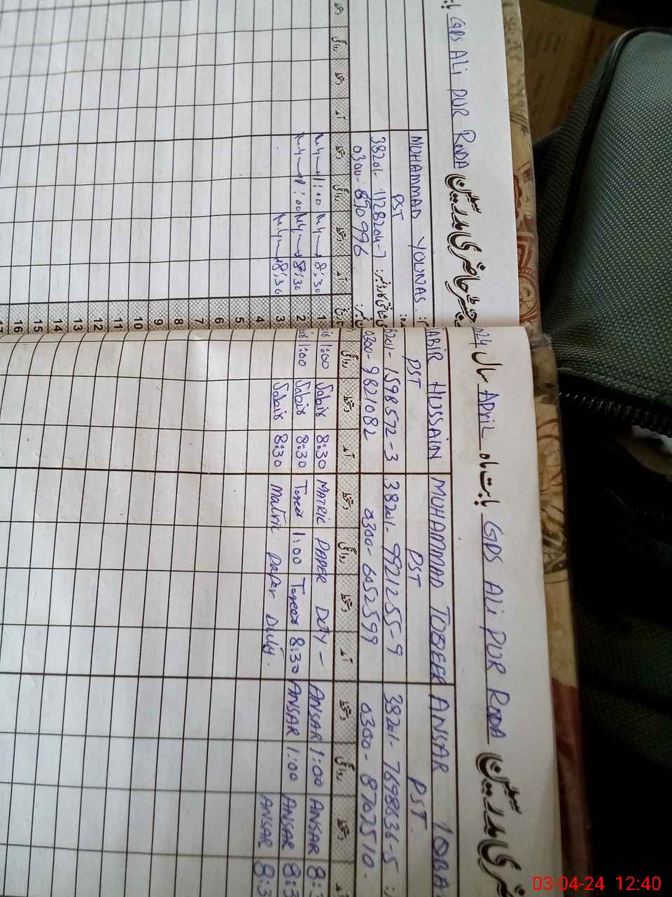 | CNIC | Full Name | Designation | R/C | Absence During Last Calender Month |