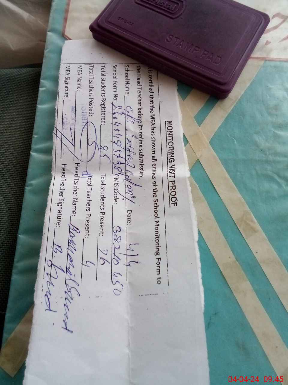 | EMIS Code: 38210450 | Name of School: GPS NO. 4 SARFRAZ COLONY JAUHARABAD | |||
