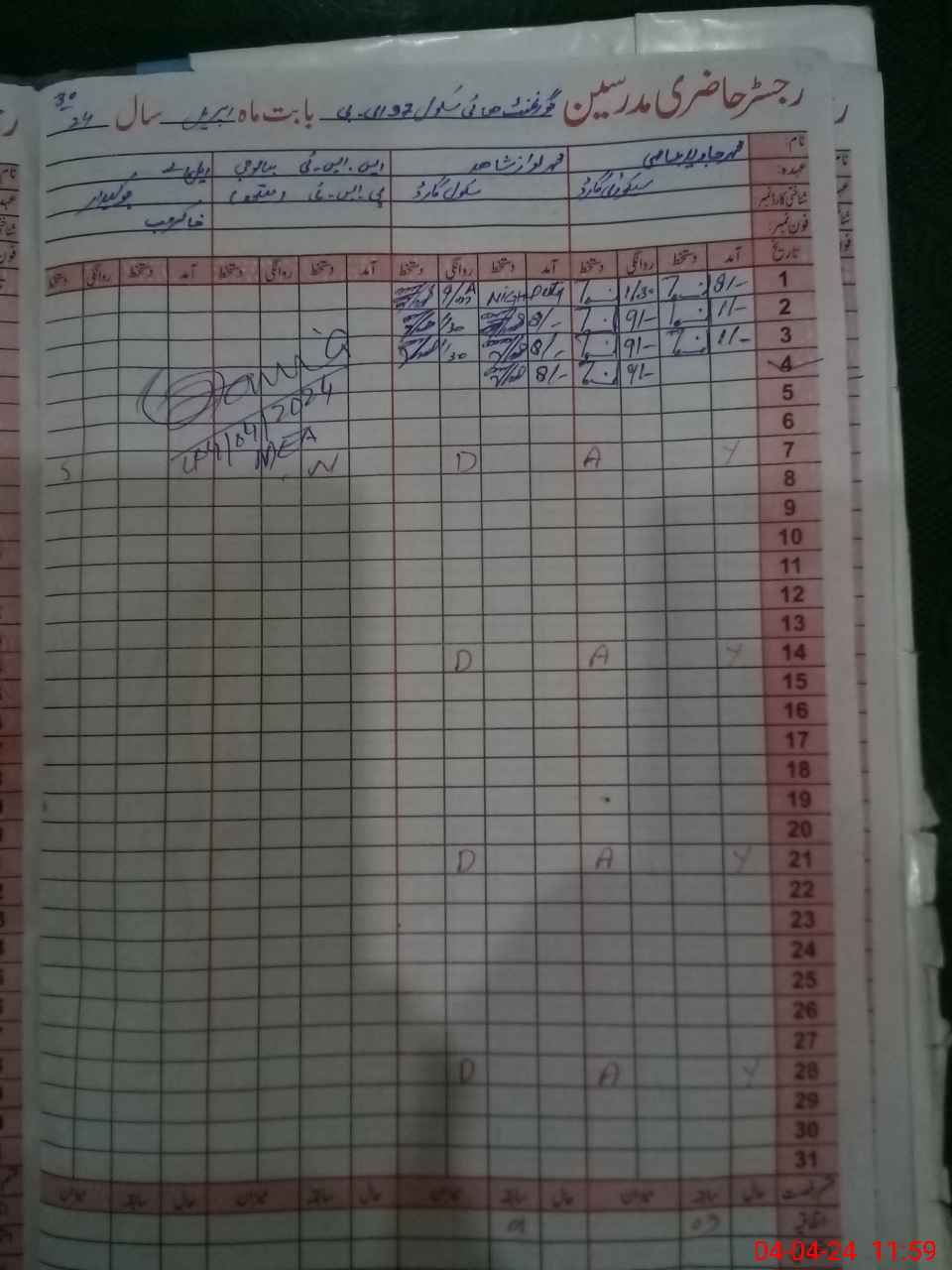 | 36**** | Sh**** Kh**** | 3 | 1 | 0 | 0 | 0 | 0 | 0 | 0 | 0 | 0 | 0 | Exam Duty |