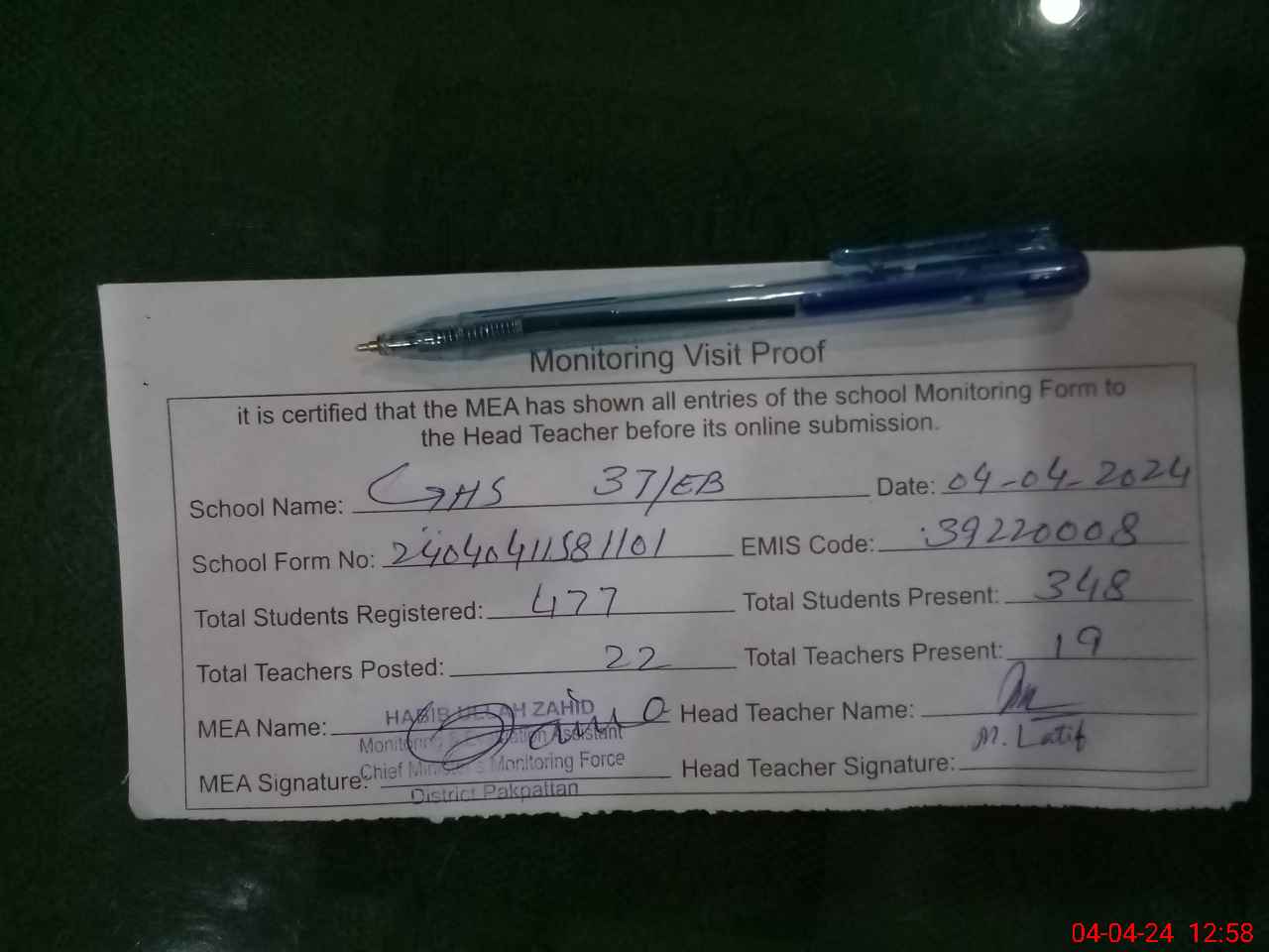 | EMIS Code: 39220008 | Name of School: GHS 37/E-B | |||