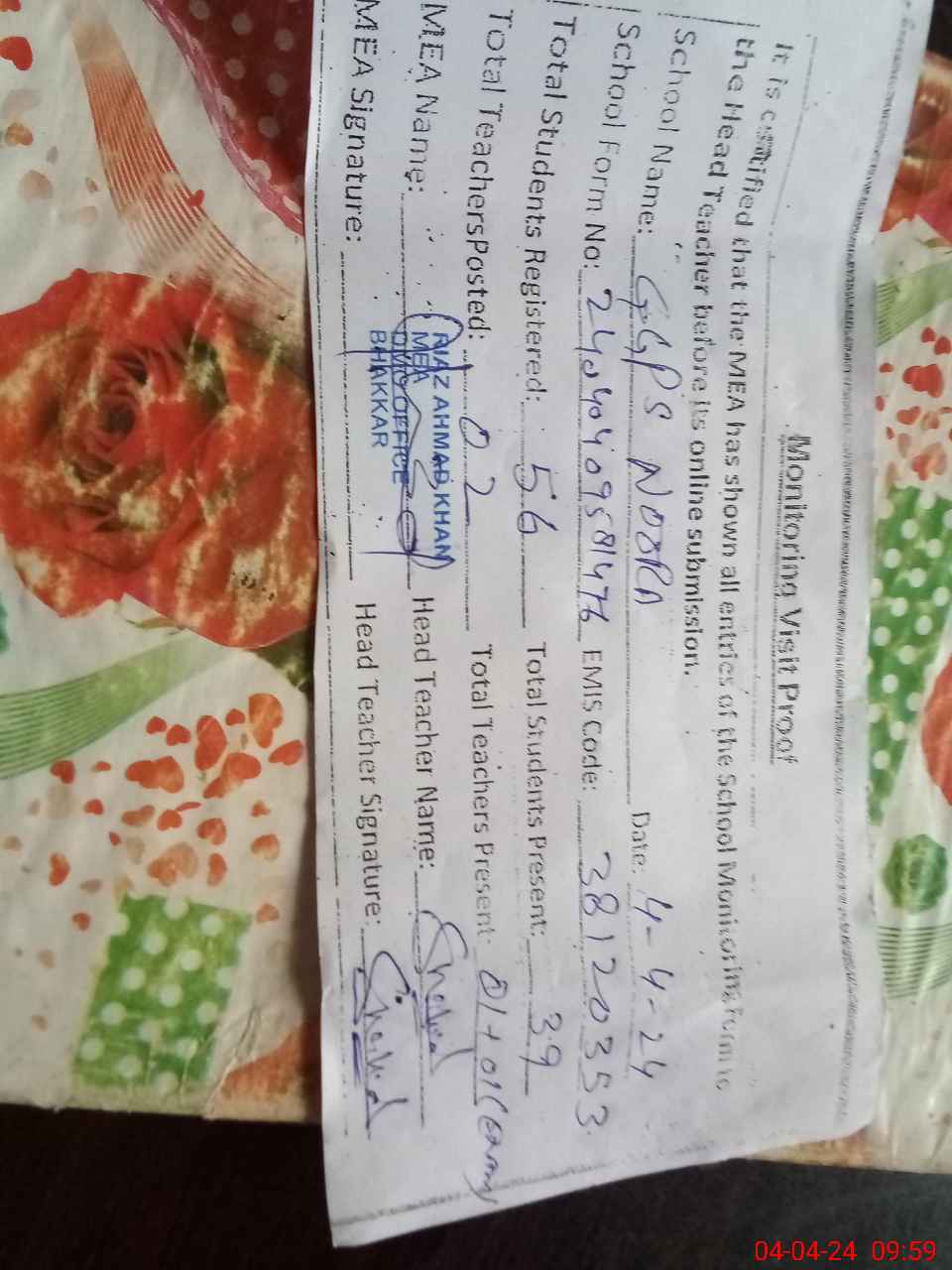 | EMIS Code: 38120353 | Name of School: GGPS NOORA | |||