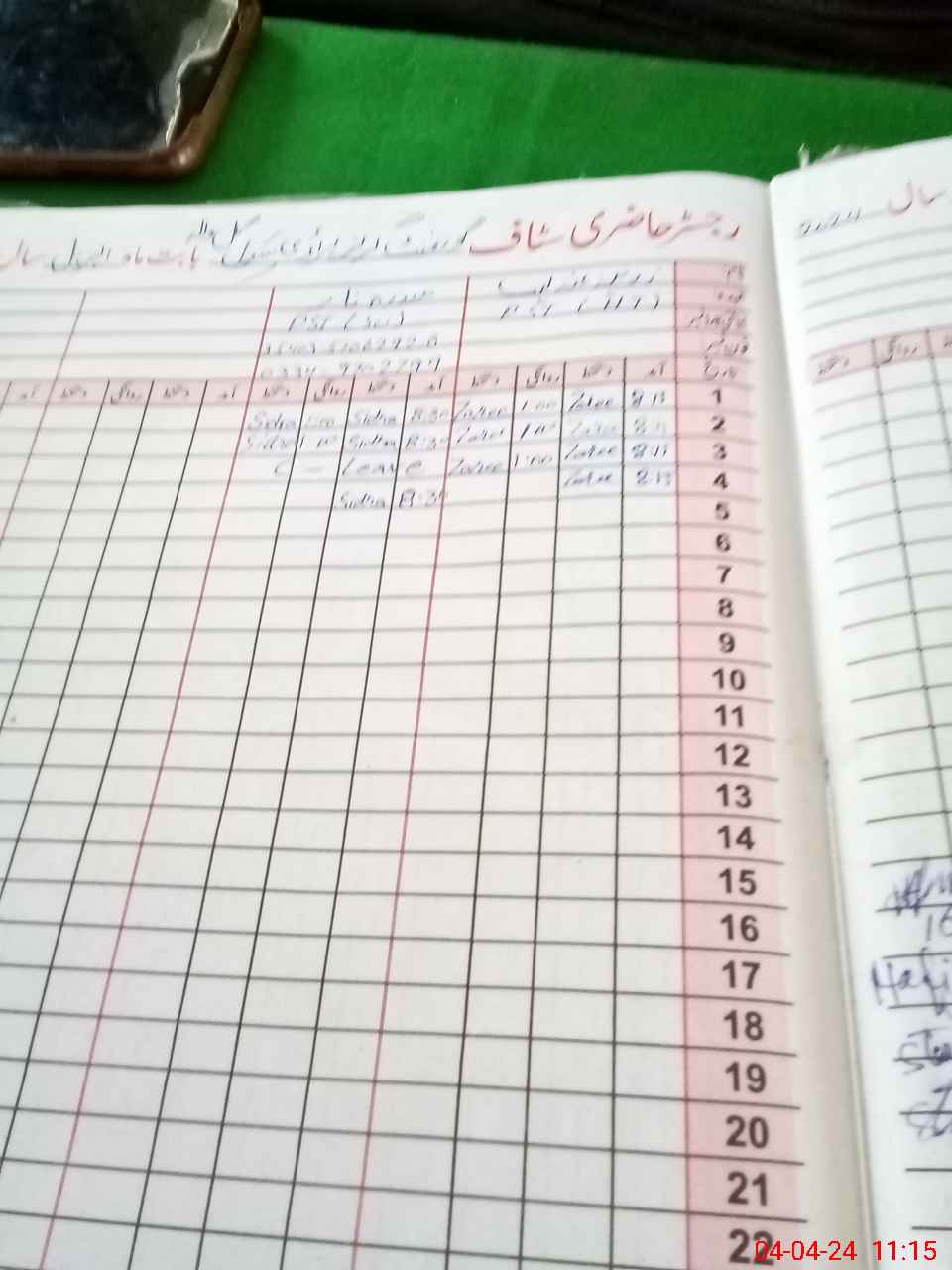 | CNIC | Full Name | Designation | R/C | Absence During Last Calender Month |