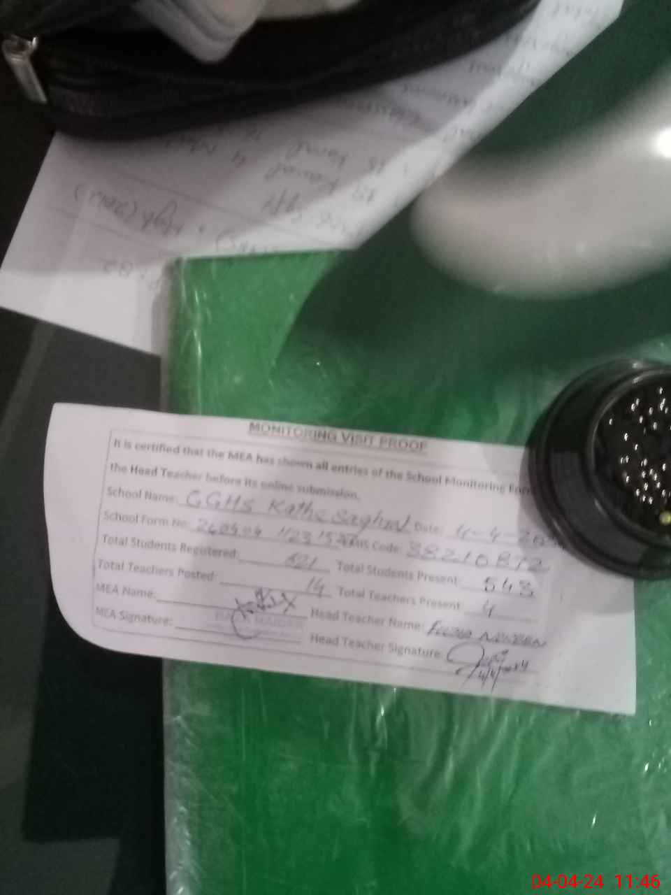 | Attendance Register | Head Teacher | MEA with School | Visit Proof |