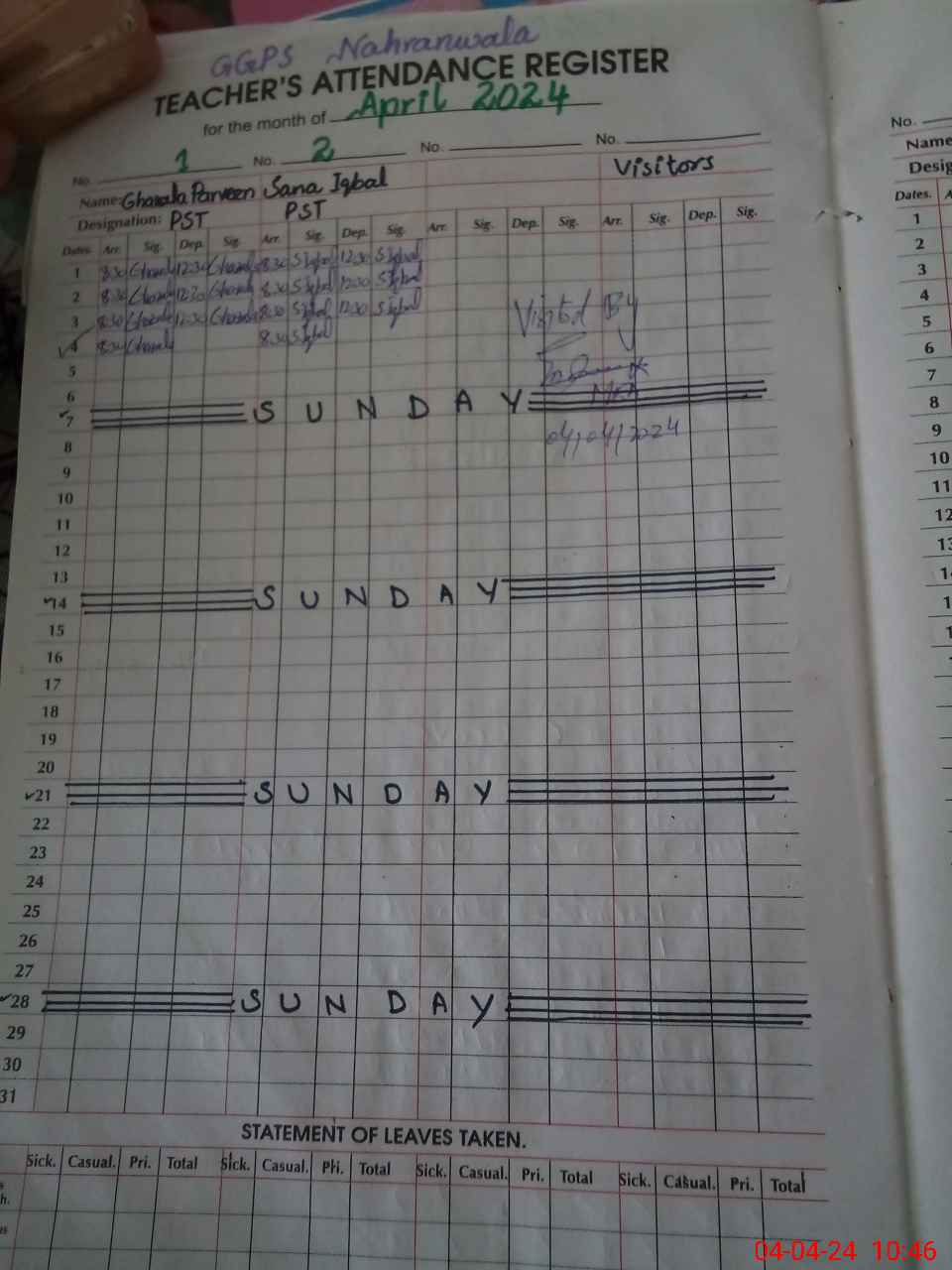 | Leave | Duty | Absent | Maternity | Medical | Ex- Pak |