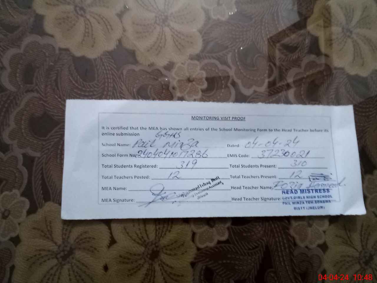 | EMIS Code: 37230021 | Name of School: GGHS PAIL MIRZA | |||
