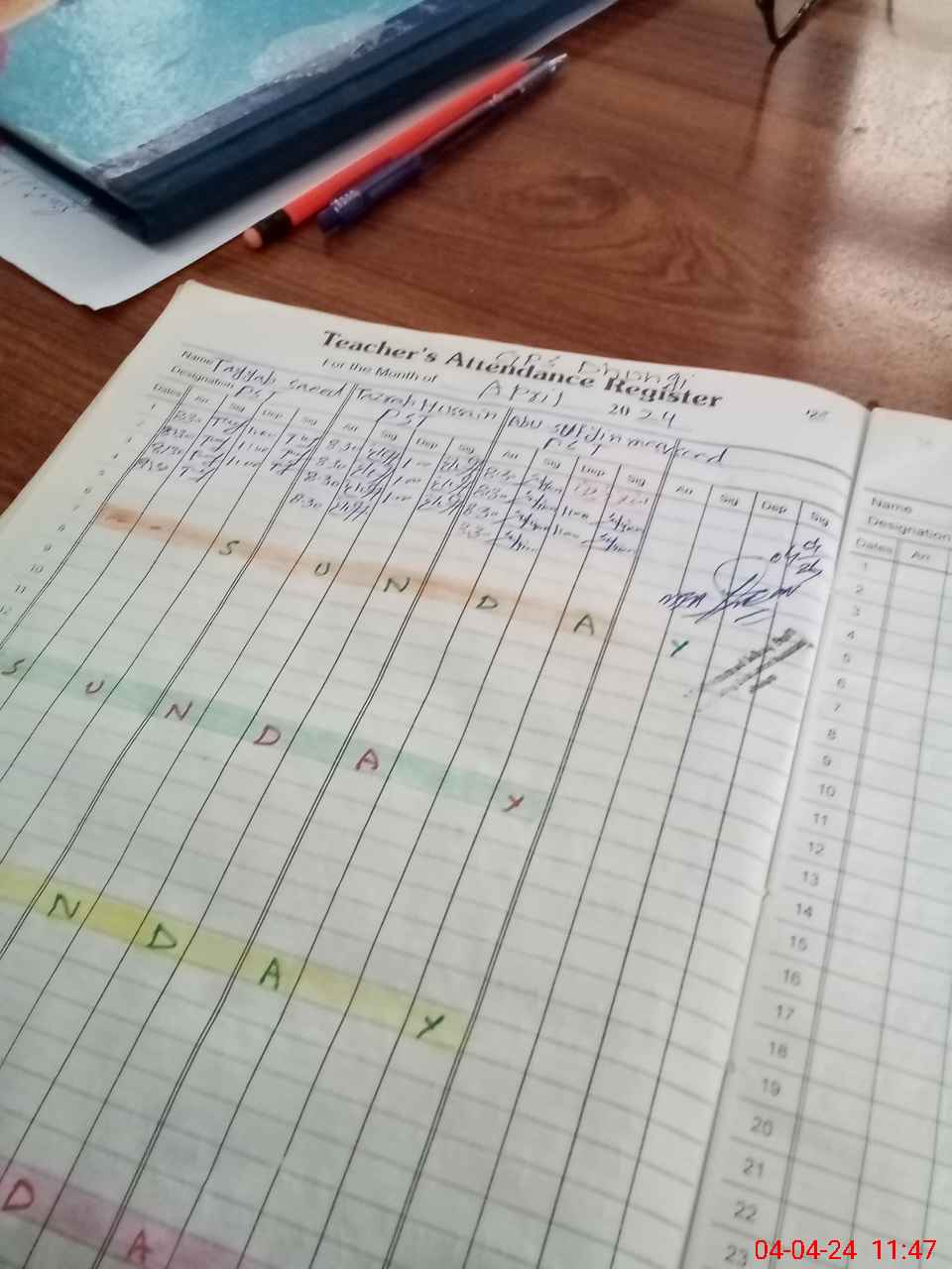 | CNIC | Full Name | Designation | R/C | Absence During Last Calender Month |