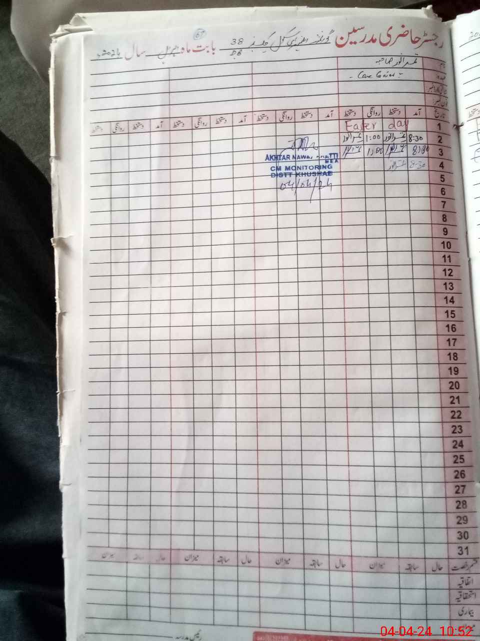 | CNIC | Full Name | Designation | R/C | Absence During Last Calender Month |