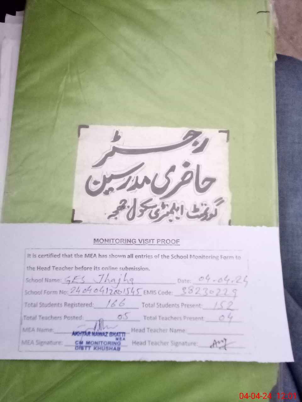| EMIS Code: 38230229 | Name of School: GES JHAJHA | |||