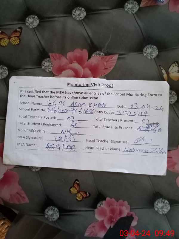 | EMIS Code: 31320719 | Name of School: GGPS ASAD KHAN | |||