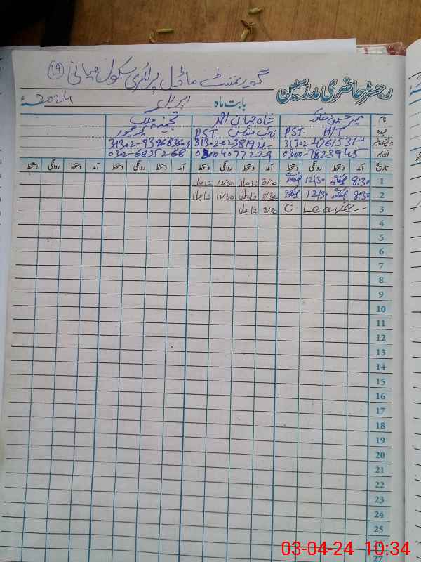 | Name: MU**** HU**** KH**** Designation: (School Headmaster's/Headmistress's) PST Phone/Cell Number: 03**** |