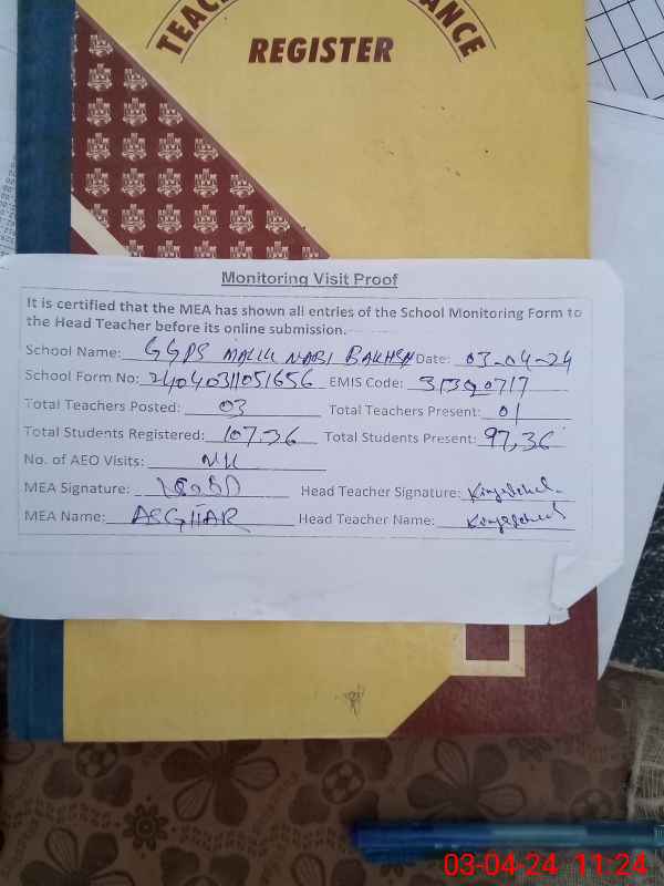 | EMIS Code: 31320717 | Name of School: GGPS MALIK NABI BUX | |||