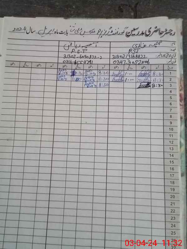 | Name: Sa**** Bu**** Designation: (School Headmaster's/Headmistress's) P S T Phone/Cell Number: 03**** |