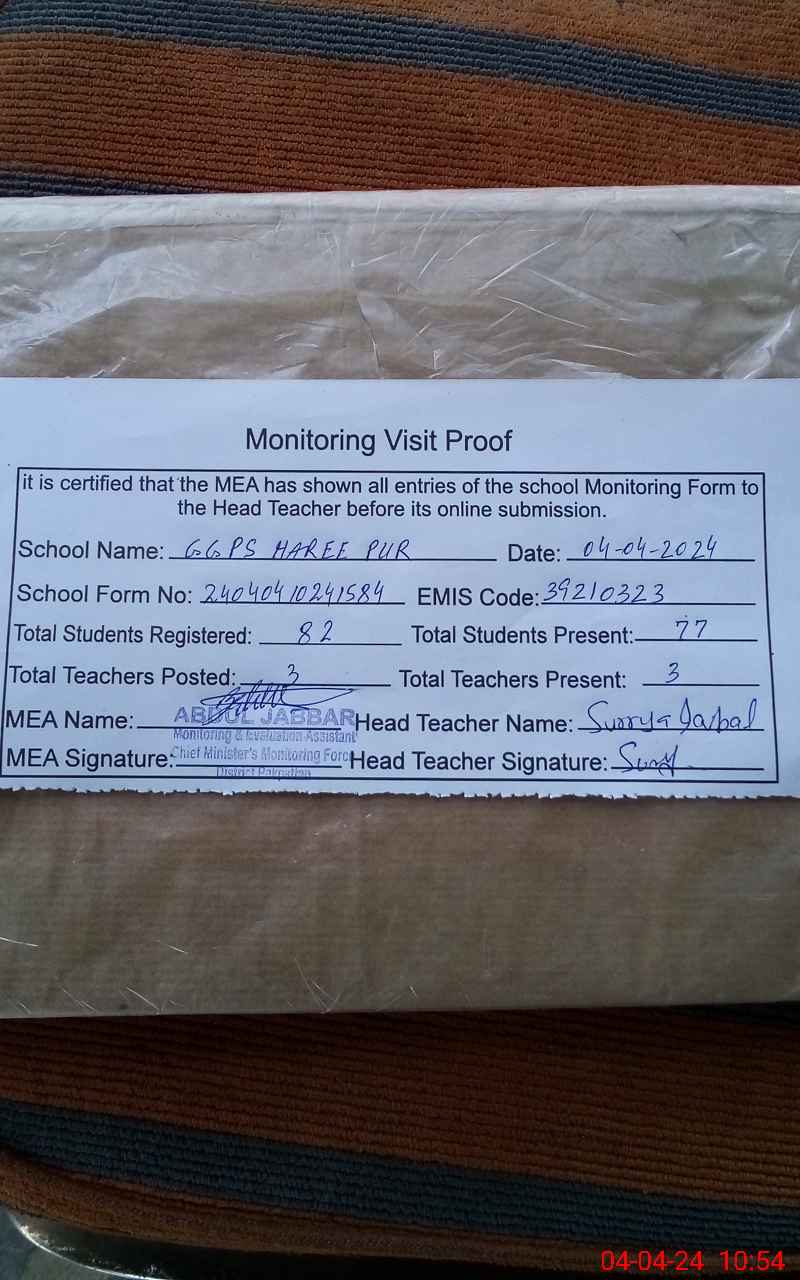 | EMIS Code: 39210323 | Name of School: GGPS HAREE PUR | |||