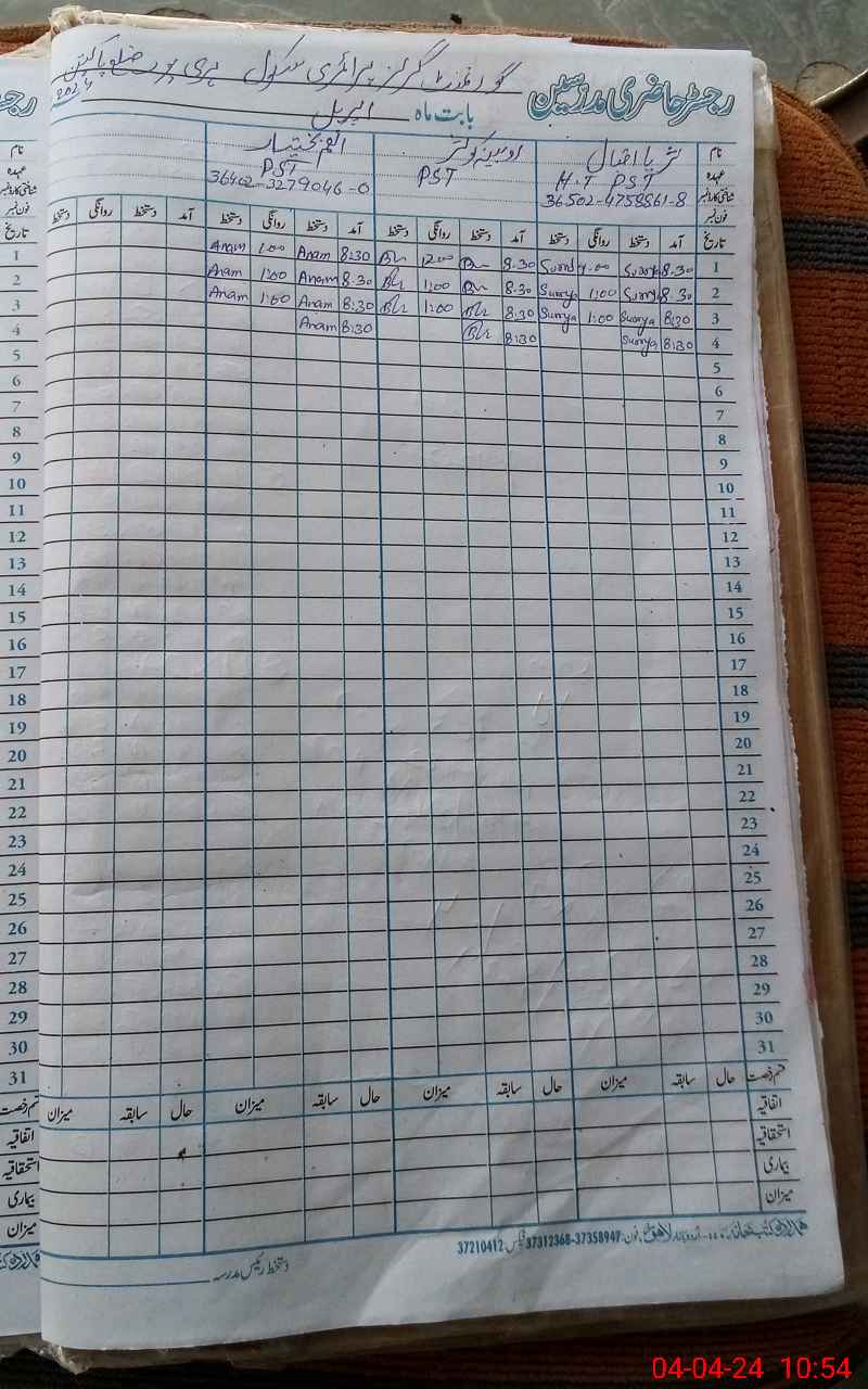 | Name: An**** Ba**** Designation: (School Headmaster's/Headmistress's) PST Phone/Cell Number: 03**** |