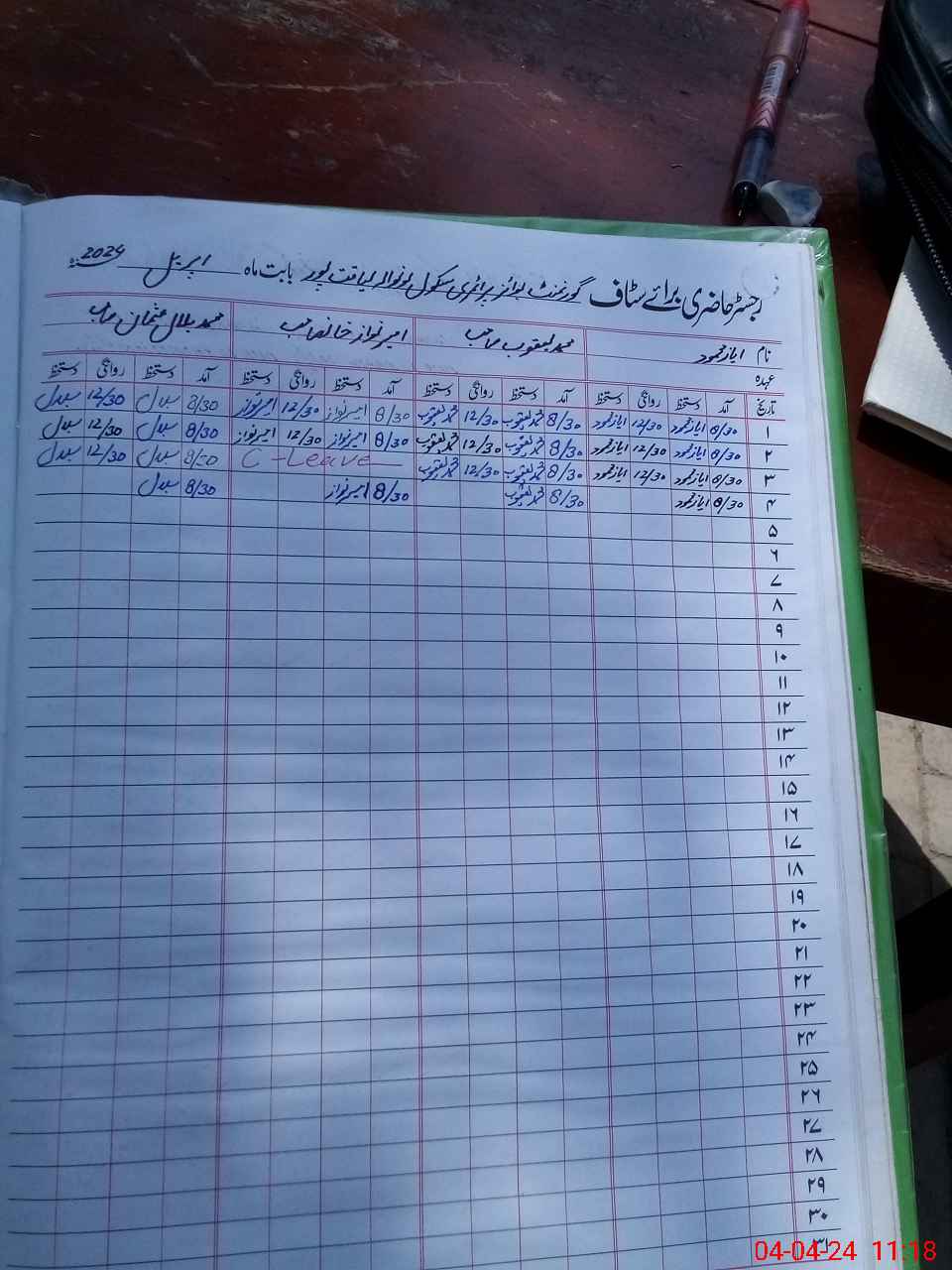 | CNIC | Full Name | Designation | R/C | Absence During Last Calender Month |