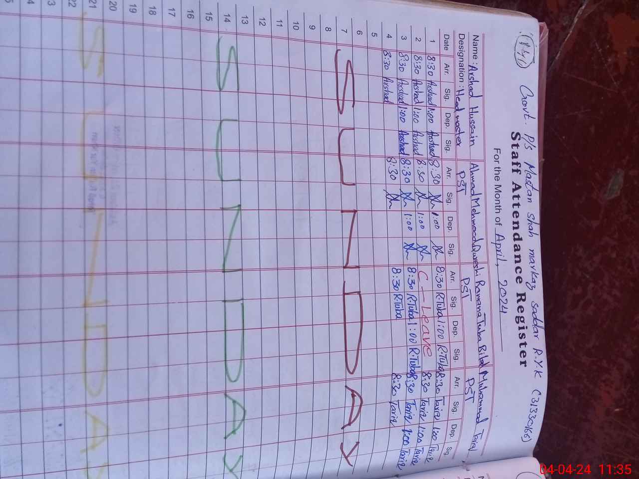 | Name: Ar**** Hu**** Designation: (School Headmaster's/Headmistress's) PST Phone/Cell Number: 03**** |