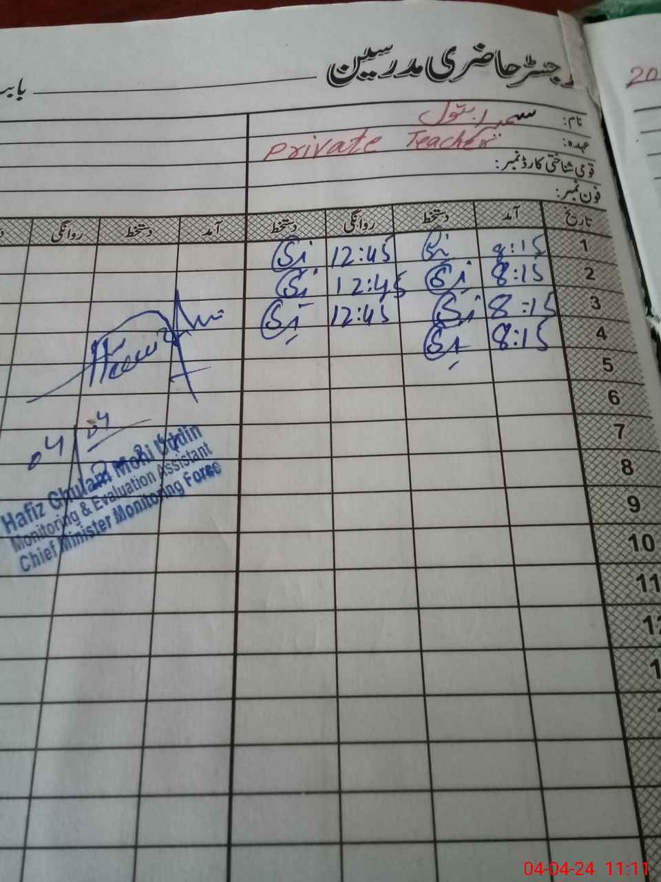 | Name: Na**** Ra**** Designation: (School Headmaster's/Headmistress's) PST Phone/Cell Number: 03**** |