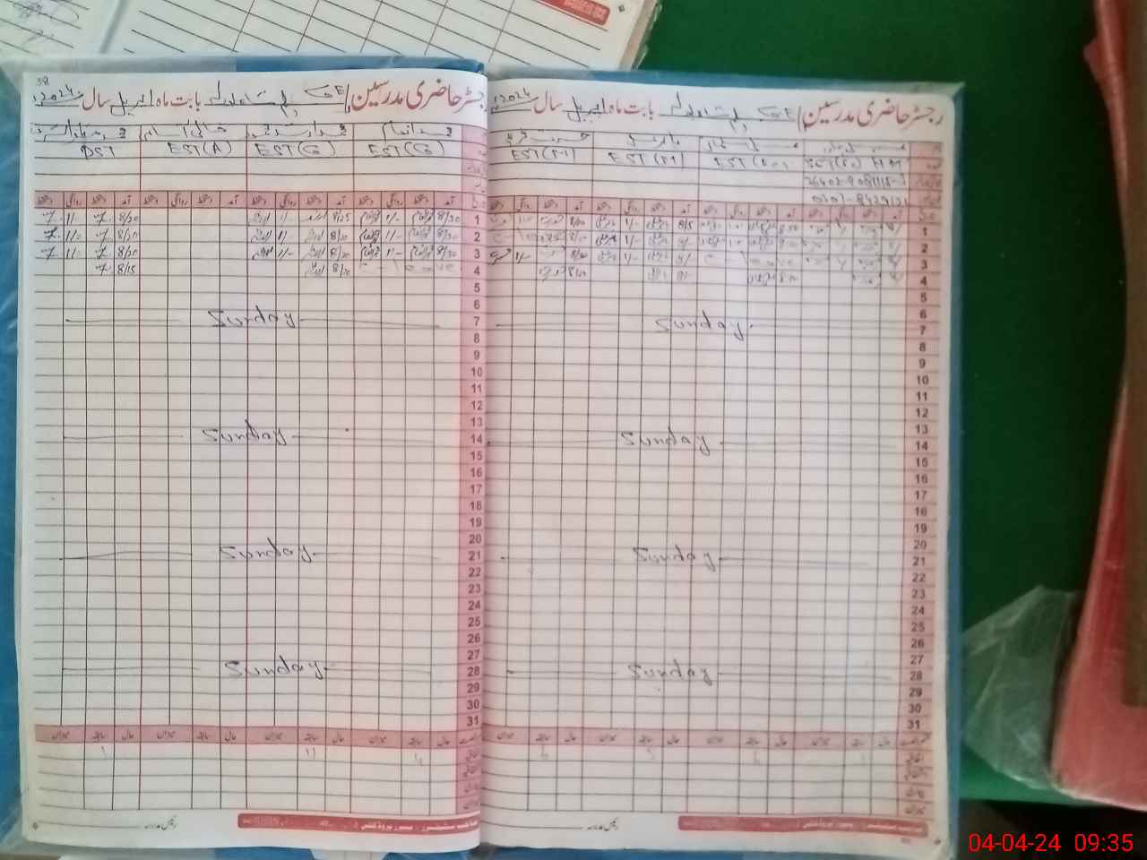 | CNIC | Full Name | Designation | R/C | Absence During Last Calender Month |