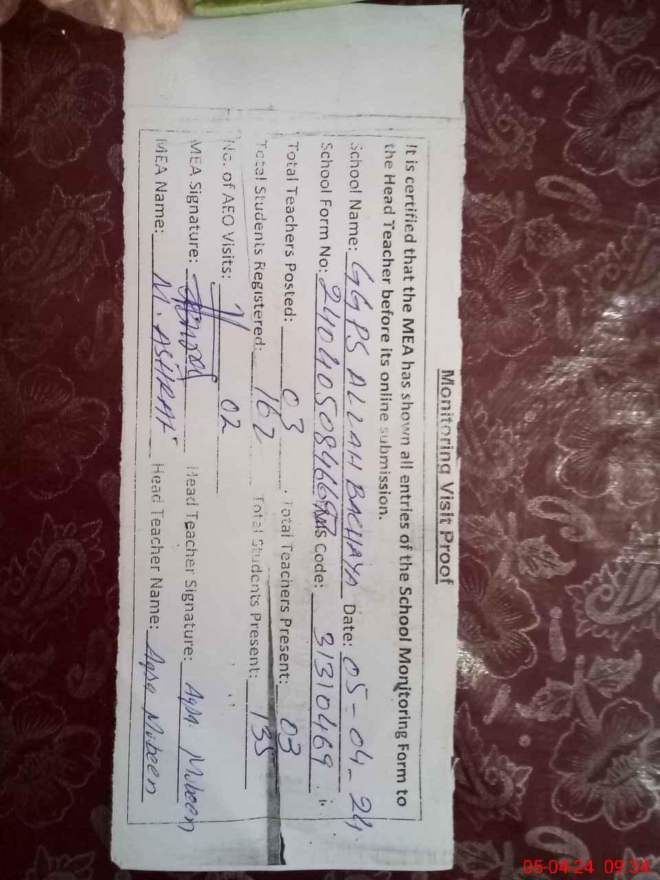 | EMIS Code: 31310469 | Name of School: GGPS ALLA BACHAYA RIND | |||