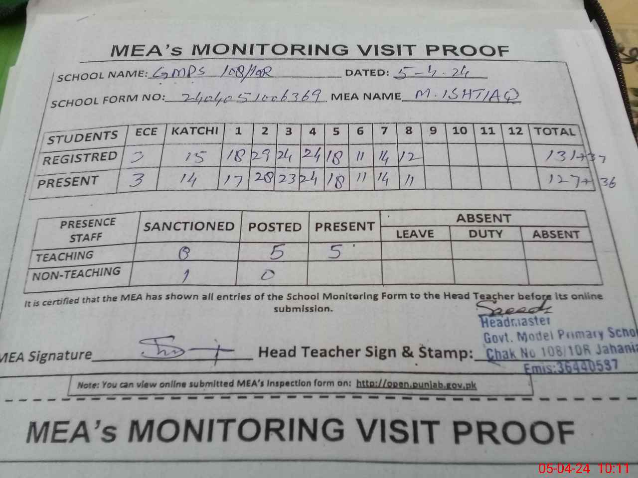 | EMIS Code: 36440537 | Name of School: GMPS 108/ 10-R | |||