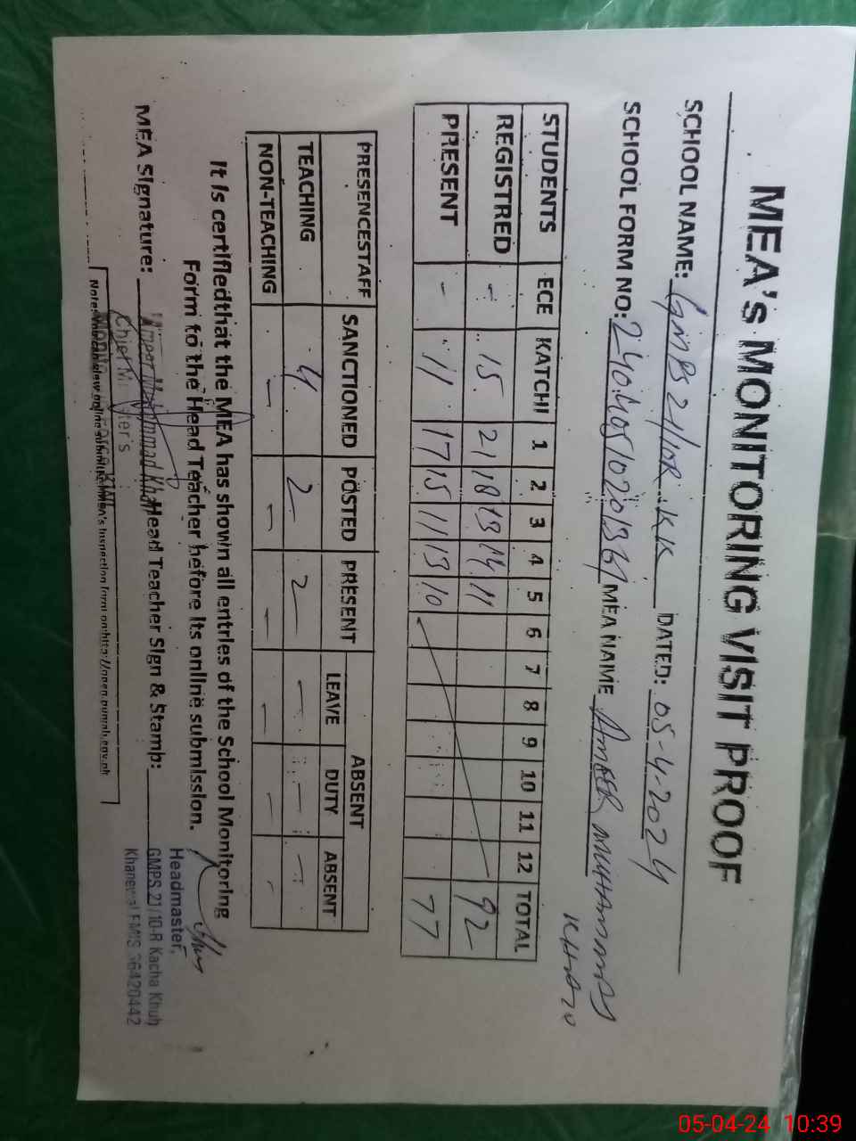| EMIS Code: 36420442 | Name of School: GMPS 21/10-R, KACHA KHUH | |||