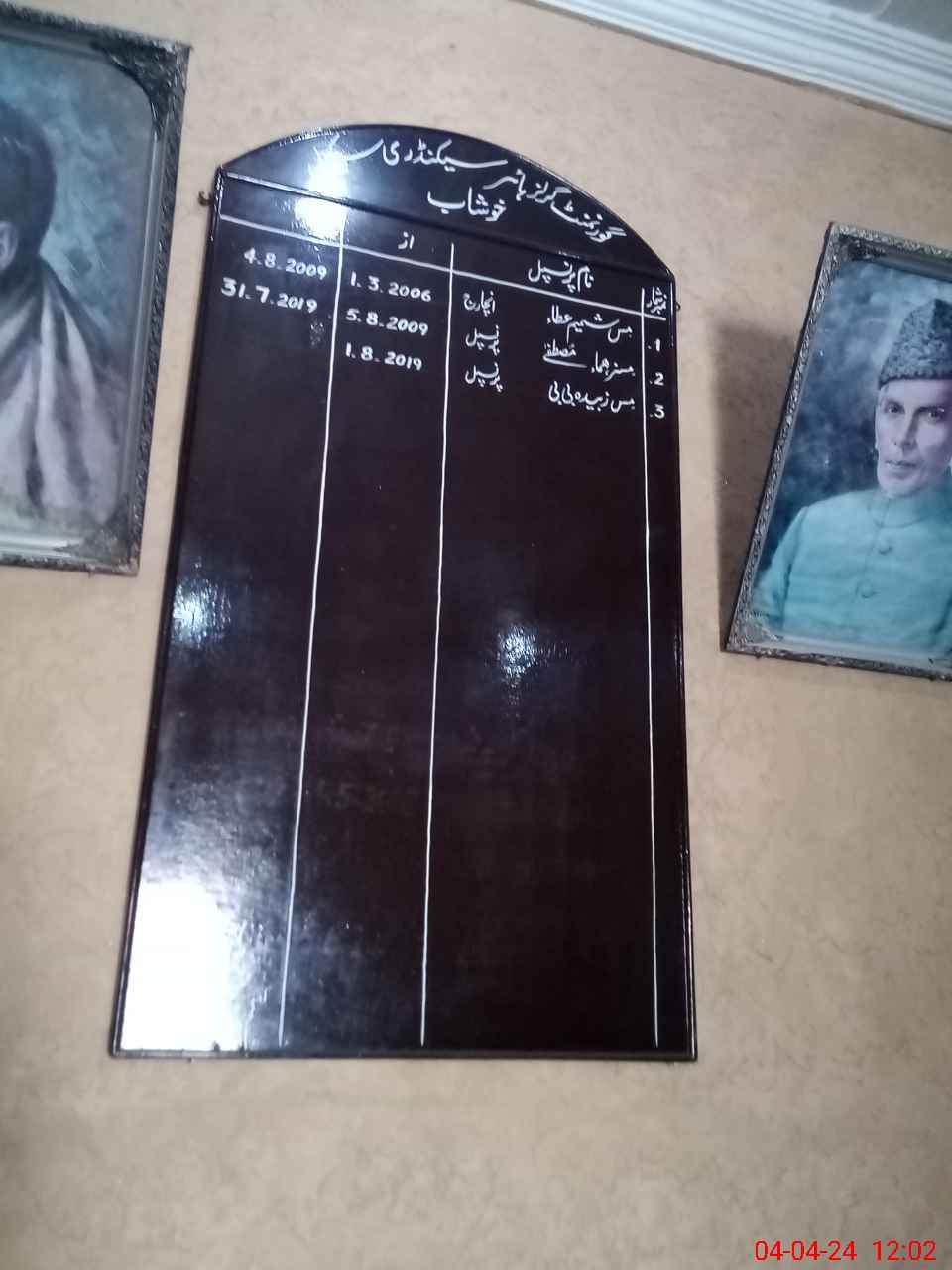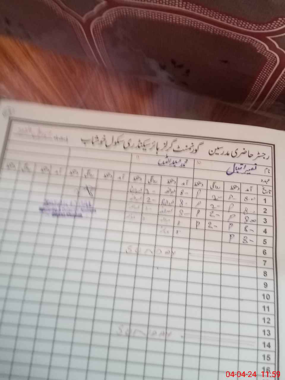 | District: KHUSHAB | Tehsil: KHUSHAB | Markaz: KHUSHAB (FEMALE) | Level: H.Sec. | |