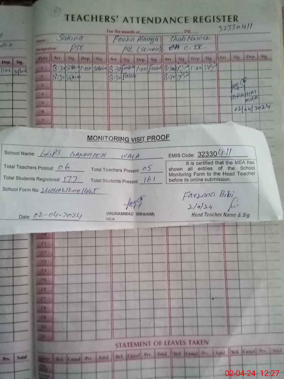 | EMIS Code: 32330411 | Name of School: GGPS GAMOON WALA | |||