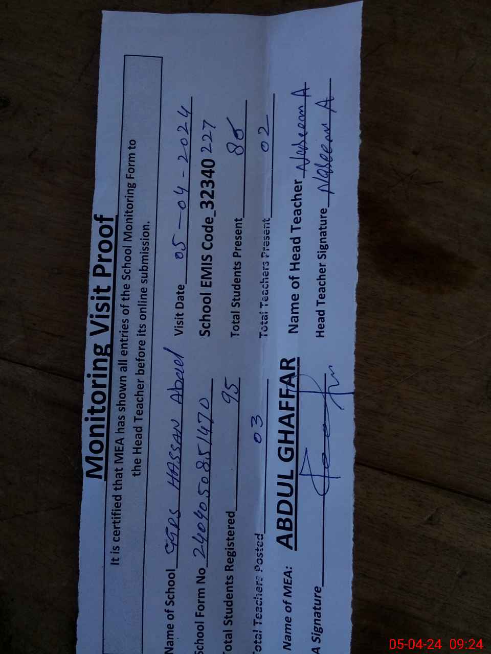| EMIS Code: 32340227 | Name of School: GGPS HASSAN ABAD | |||