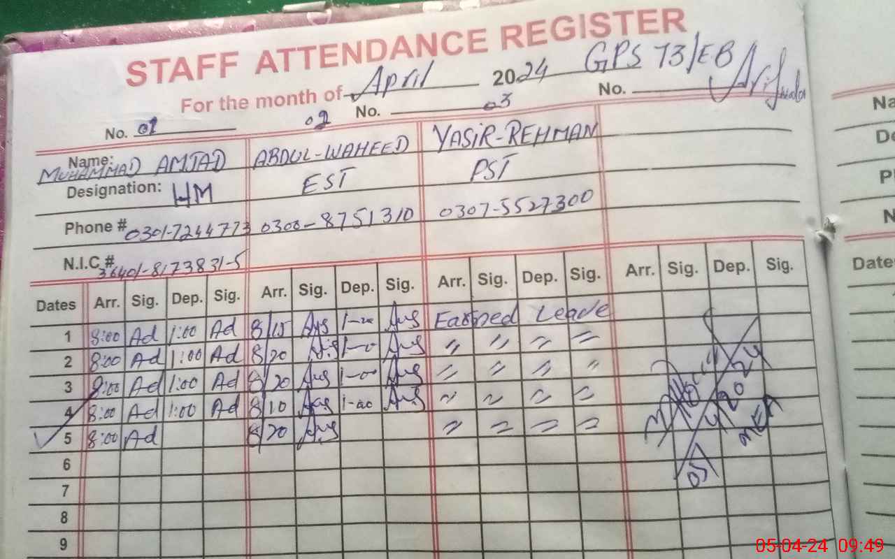 | Name: MU**** AM**** Designation: (School Headmaster's/Headmistress's) PST Phone/Cell Number: 03**** |