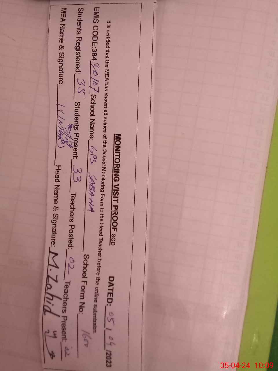 | EMIS Code: 38430107 | Name of School: GPS SABANA | |||