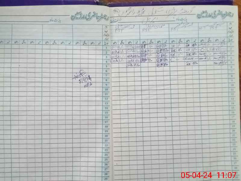 | CNIC | Full Name | Designation | R/C | Absence During Last Calender Month |