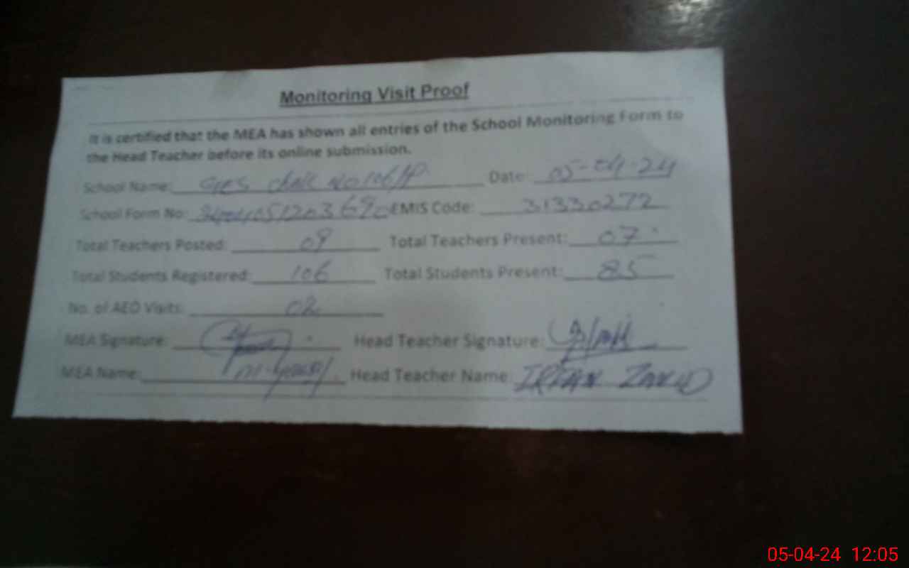 | EMIS Code: 31330272 | Name of School: GES CHAK 106/P | |||
