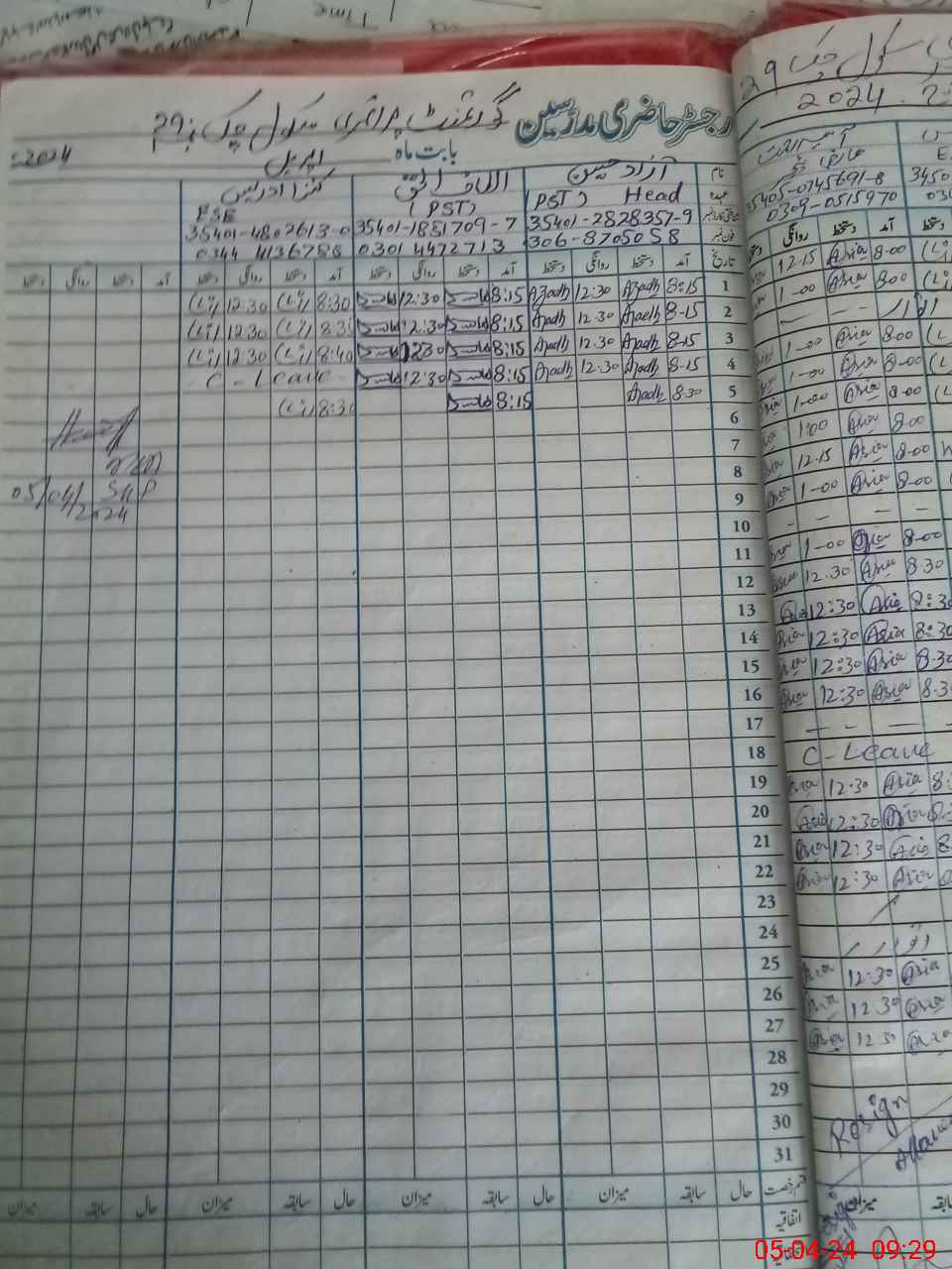 | Name: AZ**** HU**** Designation: (School Headmaster's/Headmistress's) PST Phone/Cell Number: 03**** |