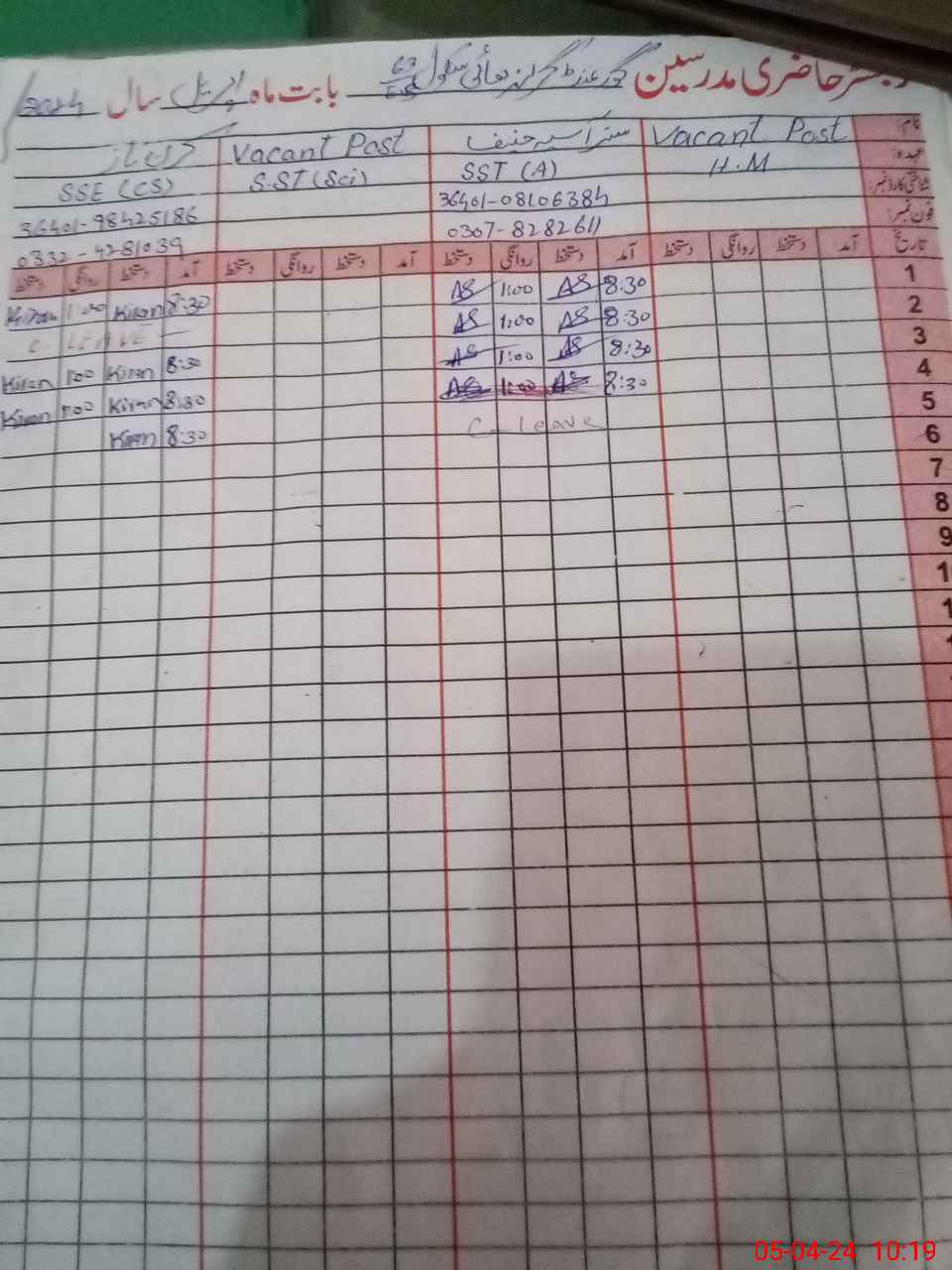 | 31**** | Kh**** As**** Ra**** | PST | Regular | 0 | 31 | 0 | 0 | 0 | 0 | 0 | 0 | 0 | Exam Duty |