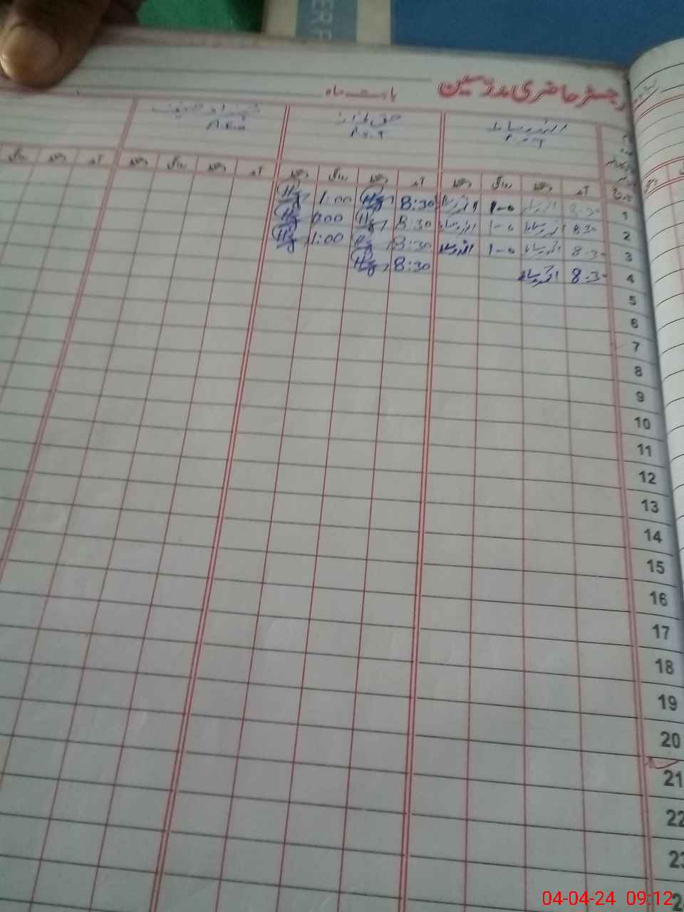 | CNIC | Full Name | Designation | R/C | Absence During Last Calender Month |