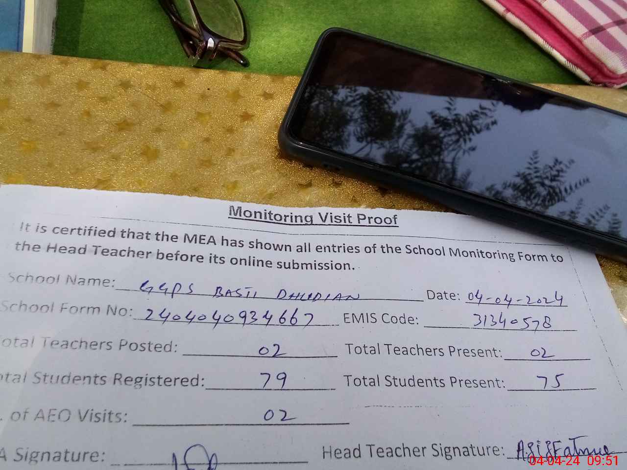 | Certified that this School was Inspected by the Undersigned MEA/DMO Today and the Information Stated Above is as Per Record. | |||||