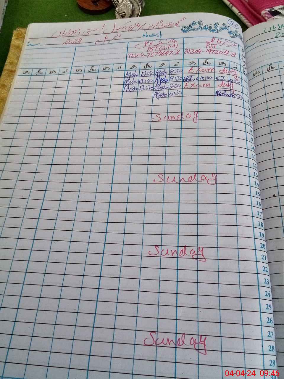 | Name: AZ**** FA**** Designation: (School Headmaster's/Headmistress's) PST Phone/Cell Number: 03**** |
