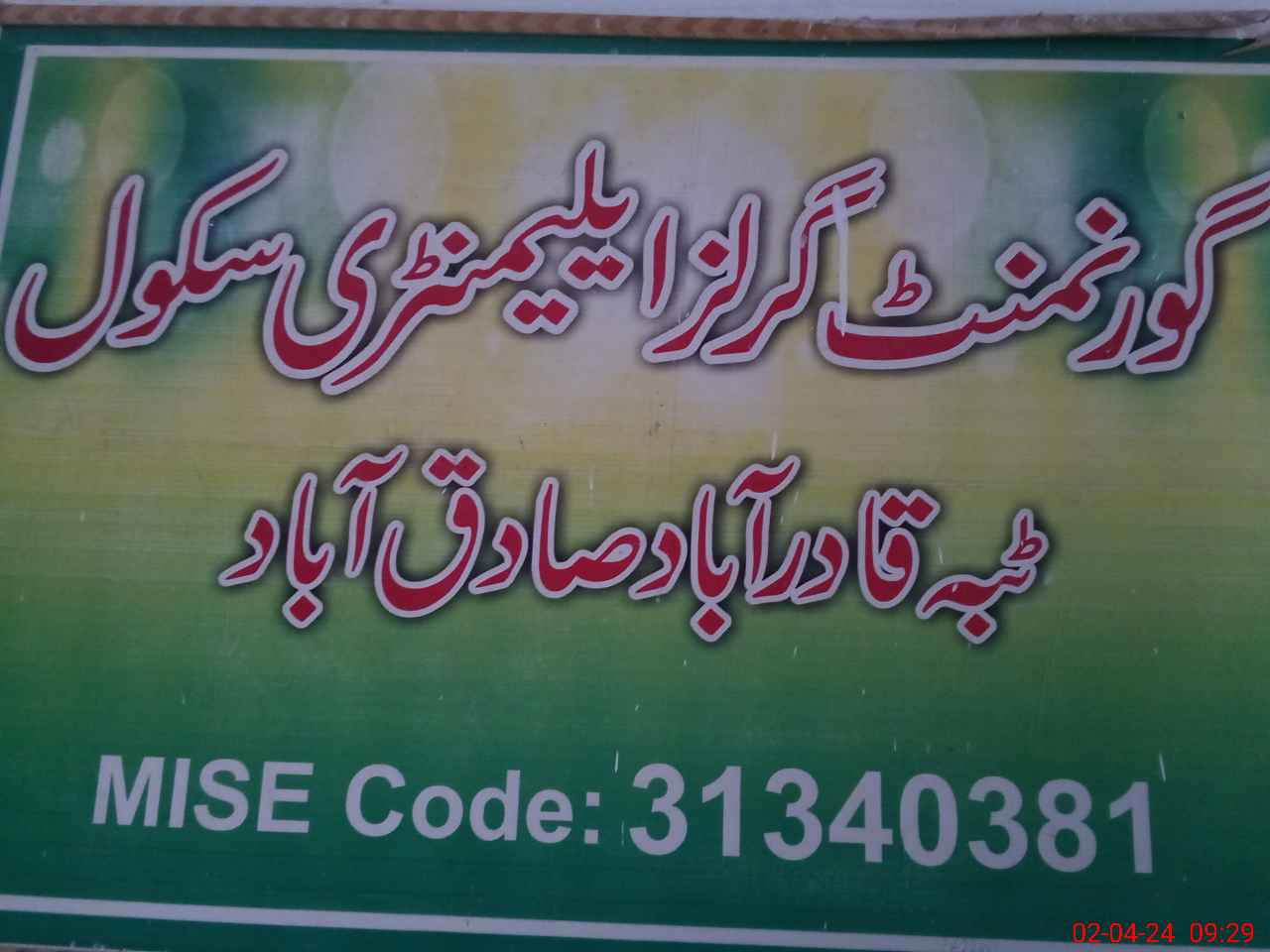 | EMIS Code: 31340381 | Name of School: GGES TIBBA QADIR ABAD | |||