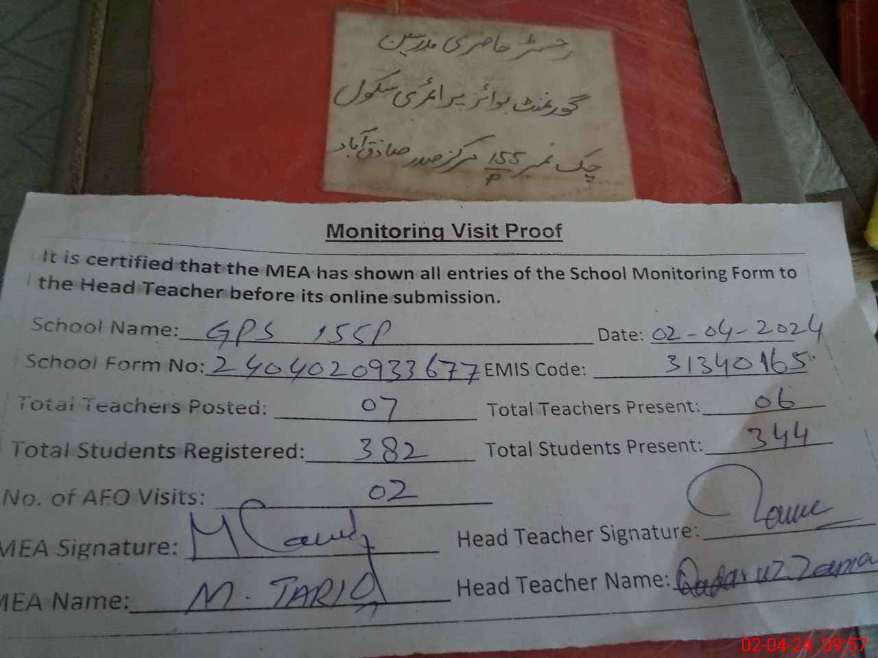 | EMIS Code: 31340165 | Name of School: GPS CHAK NO 155/P | |||