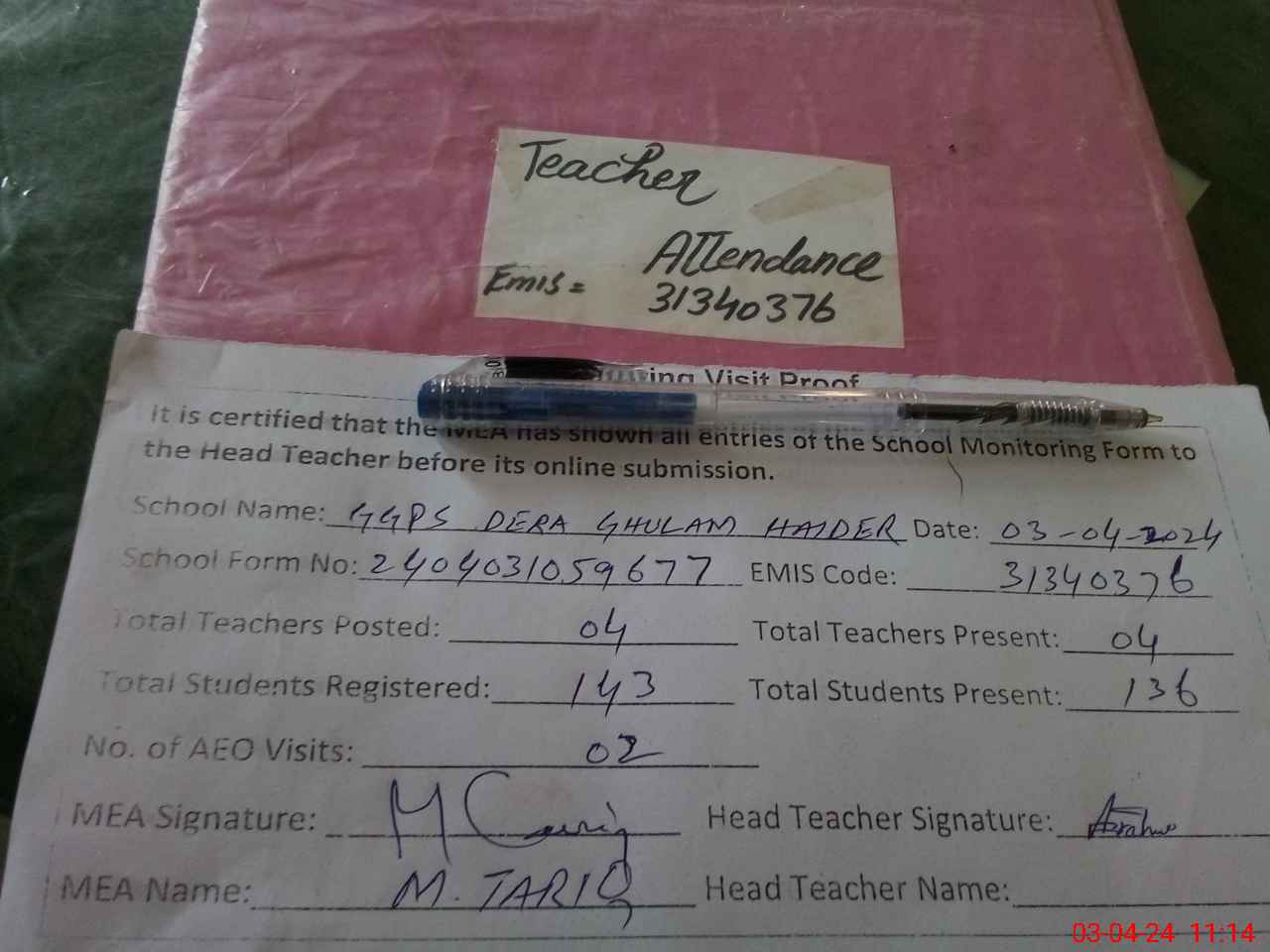 | EMIS Code: 31340376 | Name of School: GGPS DERA GHULAM HAIDER | |||