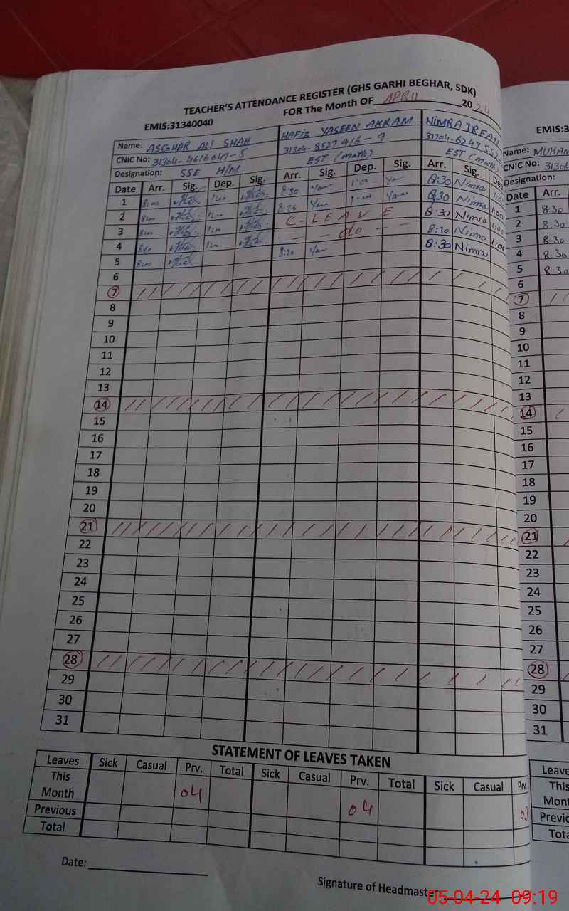 | Name: As**** Al**** Sh**** Designation: (School Headmaster's/Headmistress's) S.S E Phone/Cell Number: 03**** |